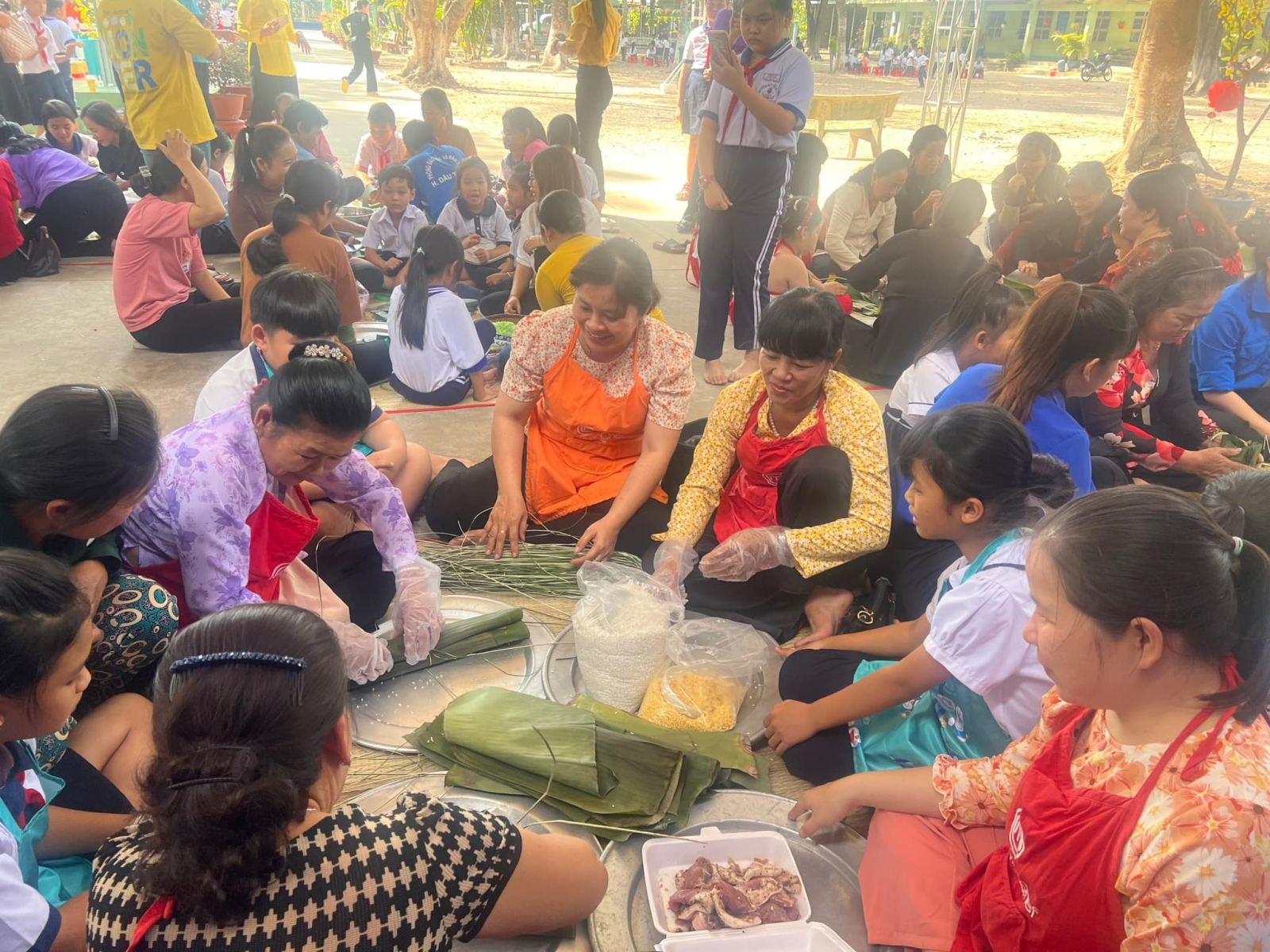 Sự kiện bao gồm gian hàng ẩm thực quyên góp cho chương trình “Quà mùa xuân cho bạn nghèo đón Tết” và hoạt động “Ngày của con” với chủ đề “Tết sum vầy - Gắn kết yêu thương”, trong đó học sinh trải nghiệm gói bánh chưng, bánh tét. Sáng 29/01/2024, nhà trường đã trao tặng 16 phần quà cho học sinh khó khăn, cùng bánh chưng, bánh tét từ lợi nhuận bán hàng. Một mạnh thường quân cũng đã trao tặng thêm 12 phần quà. Sau đây là một số hình ảnh của hoạt động: