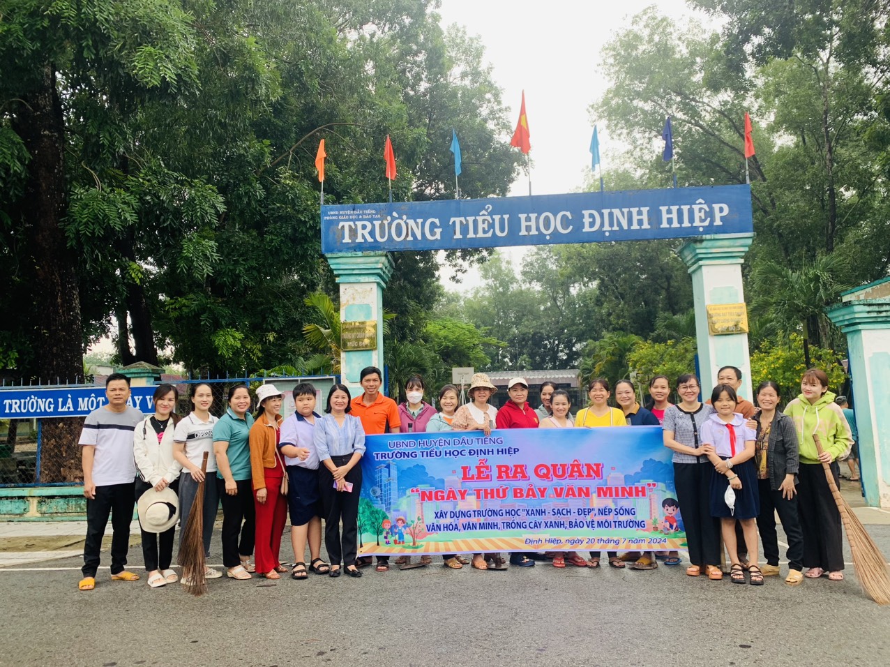 Nhằm tiếp tục đẩy mạnh thực hiện Đề án số 02-ĐA/TU của Tỉnh ủy Bình Dương về "Công tác dân vận tham gia xây dựng nếp sống văn hóa - văn minh" trên địa bàn tỉnh Bình Dương giai đoạn 2021-2025. Đúng 8 giờ sáng, ngày 17 tháng 8 năm 2024, tại Trường Tiểu học Định Hiệp, tập thể CBGVCC trong đơn vị thực hiện “Ngày thứ bảy văn minh”. Sau đây là một số hình ảnh của hoạt động: