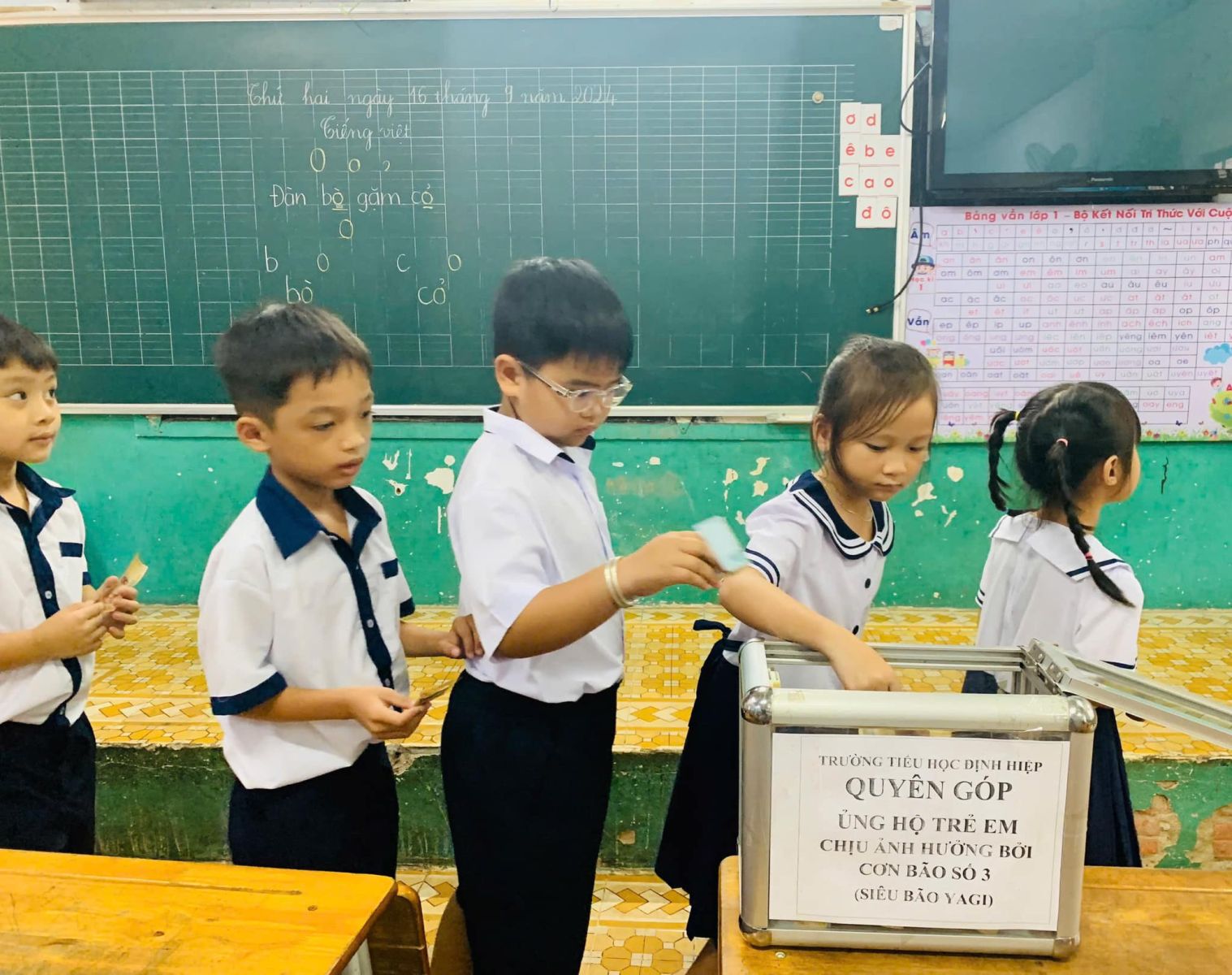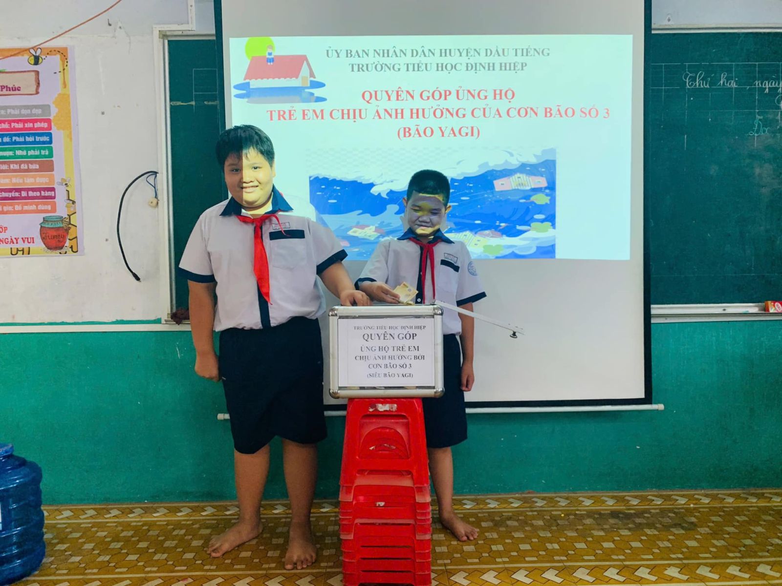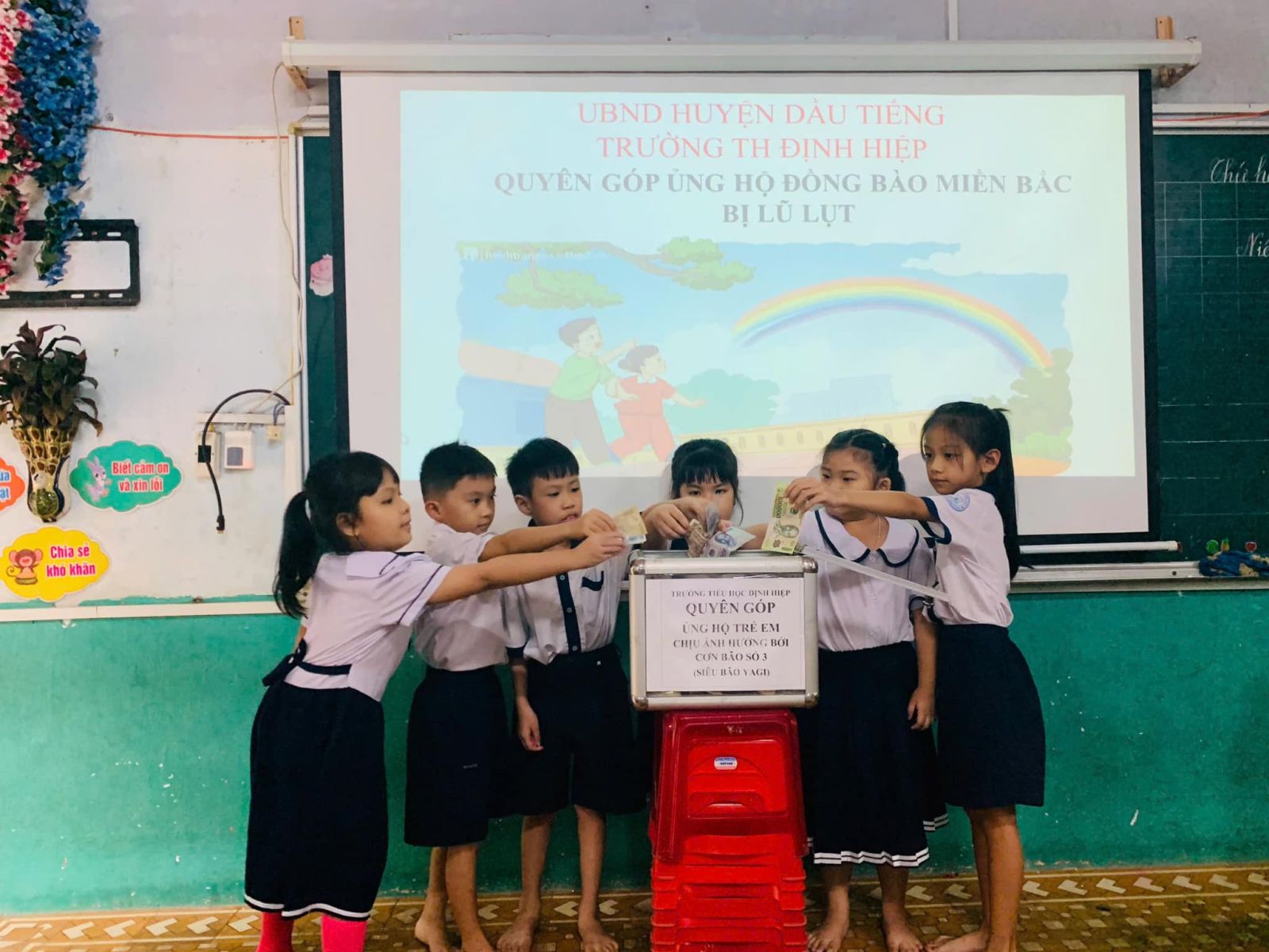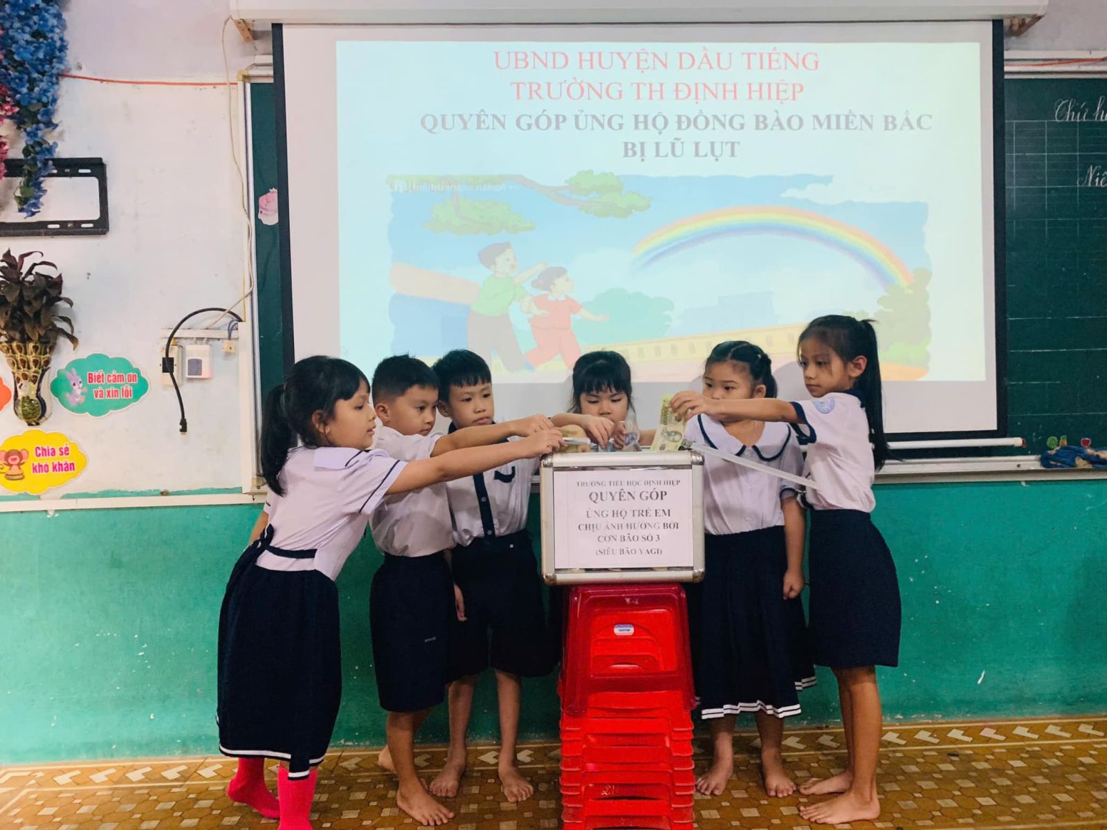 Sáng 16/9/2024, Liên đội trường TH Định Hiệp đã phát động phong trào ủng hộ đồng bào miền Bắc bị ảnh hưởng bởi siêu bão Yagi, với tinh thần “Tương thân tương ái” và “Lá lành đùm lá rách”.